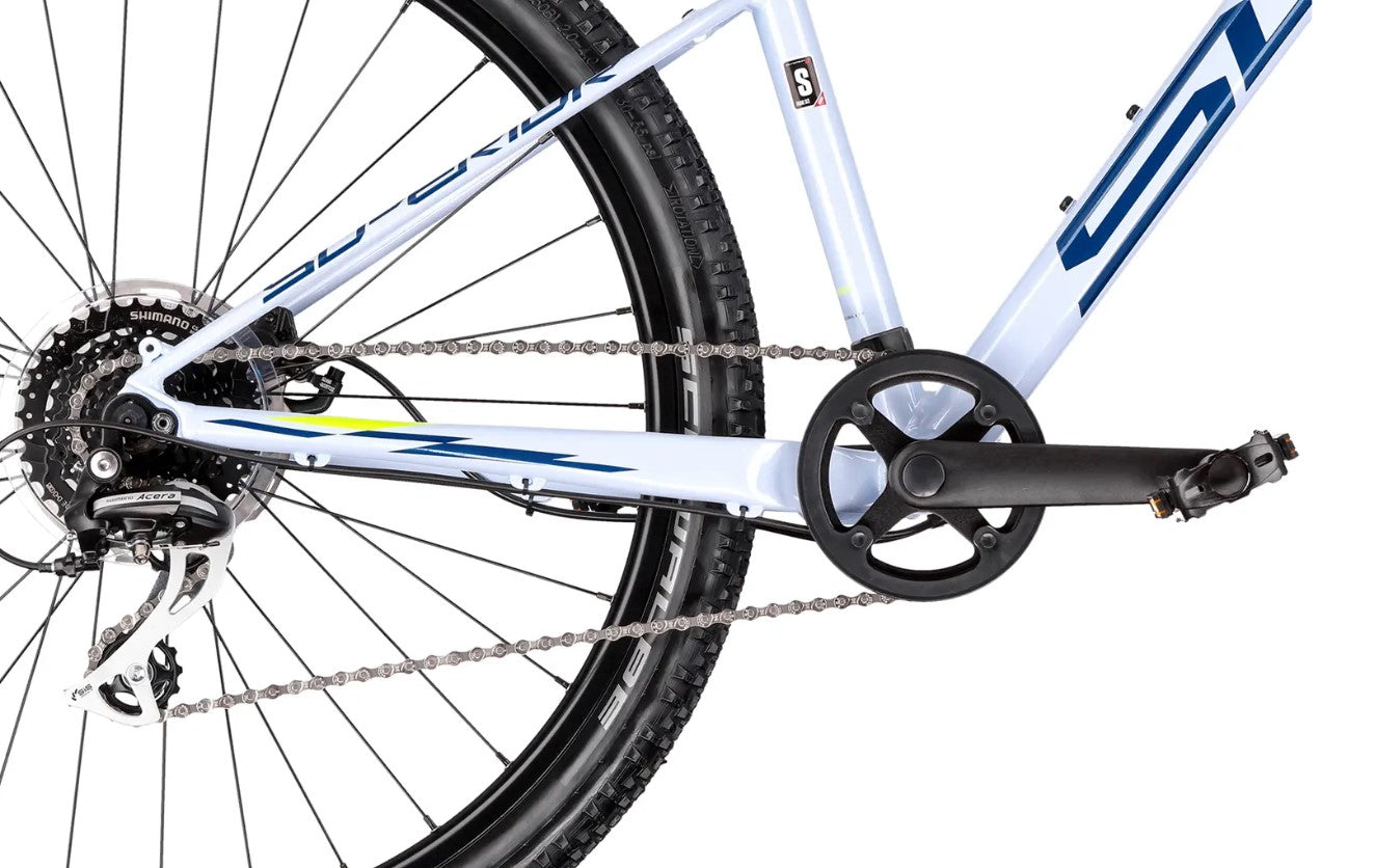 Modèle sportif abordable de vélo de 27,5" pour la conduite tout-terrain. Géométrie et engrenages soigneusement conçus pour aider à développer de bonnes habitudes de conduite liées à la maniabilité et à la cadence du vélo. La fourche Suntour avec un débattement de 100 mm permet aux enfants de se sentir à l’aise, une gamme de vitesses suffisante 1x8 est très intuitive. Le vélo se distingue par ses freins à disque hydrauliques Shimano, qui offrent une excellente puissance de freinage, même sur des surfaces mouillées. Les accessoires confortables ONE1 et la selle italienne Selle Royal sont au sommet du niveau de confort. Les pneus Schwalbe avec les motifs polyvalents sont rapides sur l’asphalte et fiables sur les pistes tout-terrain. Le vélo convient aux cyclistes d’une taille approximative de 130 à 165 cm.